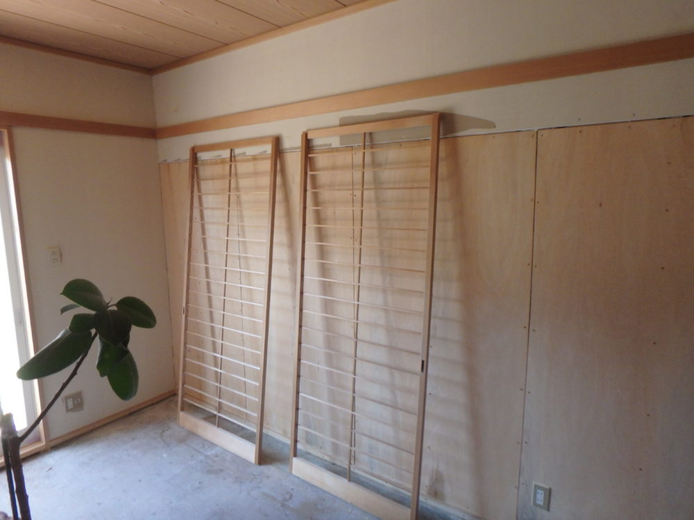クロス貼り、障子貼り後クロス、障子紙の貼り付けが終わりました。